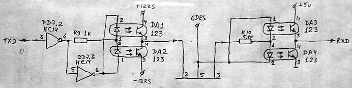 Выход преобразователей интерфейса совместим с ТТЛ и может подводиться непосредственно к выводам микроконтроллера без гальванической развязки или через схему гальванической развязки, если оптопары быстродействующие.