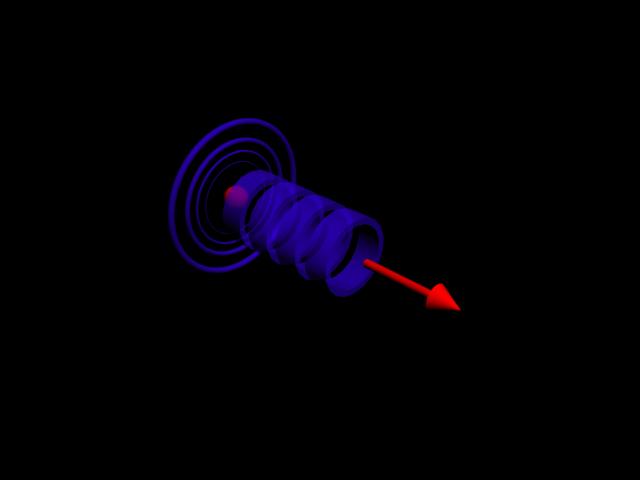 Поэтому речь идёт о "сопровождающем" каждую частицу поле. Примерно как на рисунке. Кольца волн вокруг частицы соединяются последовательно и чем их больше, тем дальше появится частица в следующий момент времени. То есть частица передвигается прыжками в моменты колебаний сопряжённого поля. (Магнитной и электрической компоненты).