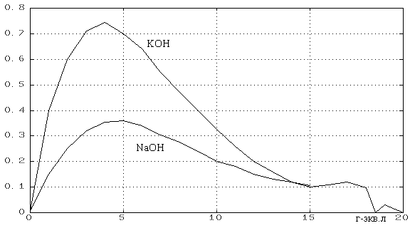 Самое маленькое сопротивление у 21% раствора КОН.