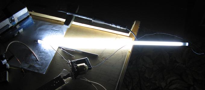 Предлагается обсудить здесь технические решения для получения света в видимом диапазоне наиболее экономичным путем. У меня пока получился только примитивный высоковольтный транс на ферритовом кольце, ток в первичку дает мультивибратор, питание 12 Вольт. Потребляет 2А, то есть 24 Ватт. Хватает на 20 Ваттную лампу дневного света. Идеи есть?