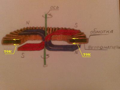 Теперь по самой схеме. Как видно из рисунка(качество не очень- работаю с мобилы) генерация энергии происходит при пересечении проводником силовых линий МП. Т.к. обмотка равномерно распределена по кругу то отсутствуют ярко-выраженные полюса и момент удержания вращающихся магнитов(что есть гуд), но есть у меня сомнения относительно проавильности такого расположения полюсов и того- не возникнет ли компенсация наводимых в обмотке токов. Может кто хелпнет с прогой для расчета МП (желательно халявной)юБуду признателен.
