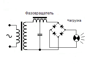 А дополнить конденсатором от середины дросселя будет еще лучше, так как получится классичесий фазовращатель. В итоге нагрузка использует во всю активную мощность, а фазовращатель сдвигает фазу так, что "превращает" всю потребленную активню мощность в реактивную (для всех внешних наблюдателей, в том числе и для счетчиков)