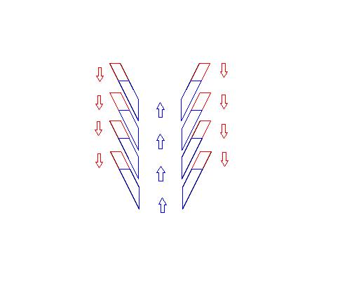 Получаеться - втягивающие полюса(узкие) конусов идут друг за другом(череда).