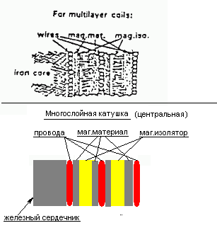 многослойность центральной катушки объясняется желанием снять побольше энергии с данного куска магнитного поля.