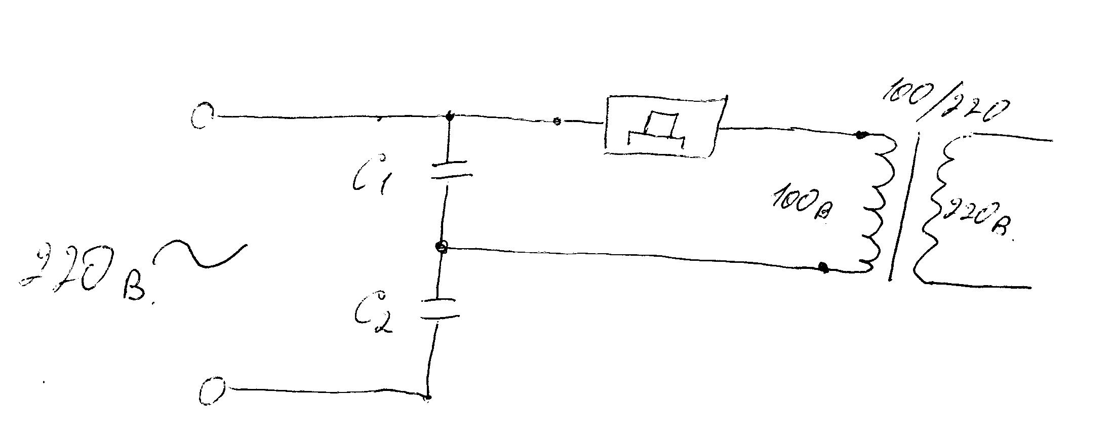 транс 100\220 в, кондёры 10 мкф 250 в, диммер и лампа 220в 100вт.