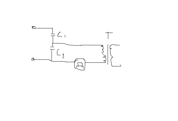 Собрал схему как на рисунке, конденсаторы 10 мкф, Д - обычный диммер, Т - трансформатор.