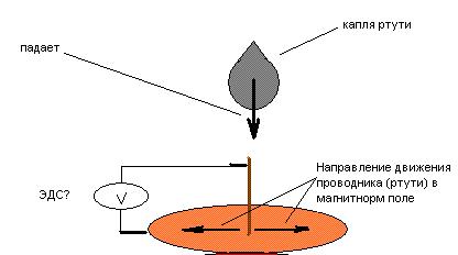 Дальше инерция капли будет её плющить в плоскости полюса магнита. По правилам рук и ног в растекающейся капле возникнет ток, который должен создать своё поле , которое против поля магнита, по полюсу которого в диск растекается капля, в которой индуцируется ток, который имеет своё поле , которое против поля магнита, по полюсу которого в диск растекается капля и, соответственно, со стороны магнита оказывается на этот диск , в который растекается капля, силовое воздействие, имеющее место при индукции тока при движении проводника перпендикулярно силовым линиям магнитногго поля, направление вектора силы этого воздействия совпадает с направлением ускорения , которое получает капля, которая касается плоскости полюса магнита после падения. В результате , величина ускорения, полученного каплей, которая растекается в диск в результате получения этого ускорения, увеличивается пропорционально величине силового взаимодействия при индукции тока, возникающего при пересечении проводником(кромкой диска, в который растекается капля)силовых магнитных линий полюса магнита, в плоскости которого растекается капля , что приведёт к росту скорости растекания капли и , соответственно, росту индуцированного тока в диске в который растекается капля , и соответствено величине тока , росту температуры проводника(диска , в который стремительно растекается капля).