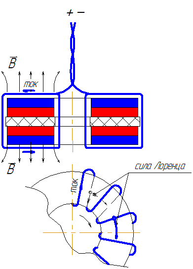 Тут вот ещё, что надо учитывать. Геометрию намотки . При определённых условиях вертикальный участок намотки( по рисунку) может пересекаться магнитными линиями не под прямым углом. Соответственно величина силы действующей на обмотку в вертикальных ея частях не равна такой же на горизонтальных. Даже с учётом плотности магнитных линий в точке "входа".