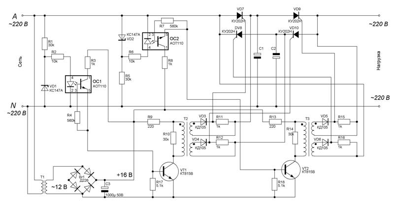 Для питания нагрузки, чувствительной к форме напряжения, на выходе устройства можно установить фильтр. В этом случае питание нагрузки будет осуществляться почти правильной синусоидой.