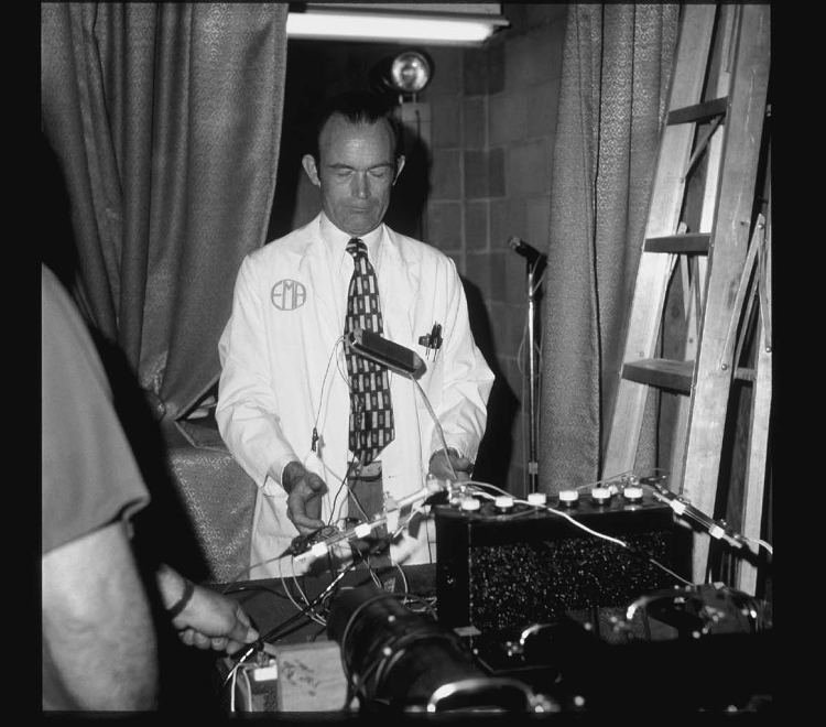Дик Хакенбергер, инженер Грея демонстрирует опыт с прыгающим электромагнитом. Грей нажимает кнопку и магнит взлетает. При этом, большая часть затраченной энергии возвращается назад в конденсатор с обратным знаком. В опыте явно нарушается энергетический баланс, однако Грей пока не понимает этого, он это поймет позже, когда построит первый прототип своего мотора.