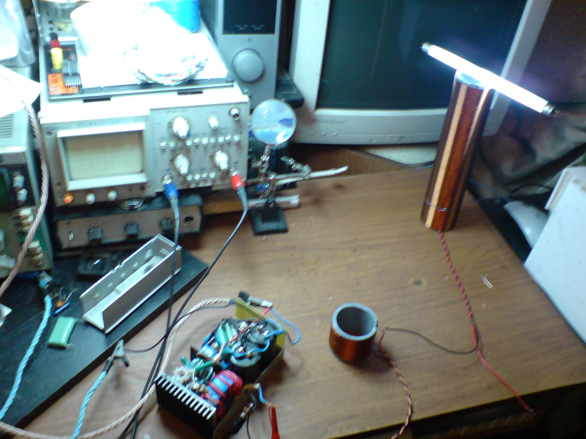 при этом картина практически не меняется если этот единстенный провод заменить на провод диаметром 0,07 мм ... но пока это ничего не дало на выходе... кроме газоразрядок