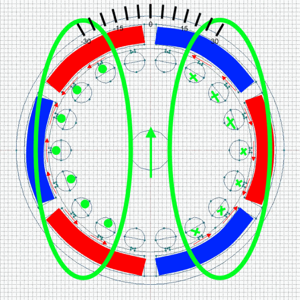 Алекс, труд конечно, титанический, но что-то вызывает неопределённое беспокойство...Разберись со своей конструкцией в таком ключе: параллельные токи притягиваются и отталкиваются в зависимости от их направлений, тогда не надо будет "линии поля" рисовать. И когда механический момент от механической нагрузки на валу будет, представь, что будет происходить с токами - они полюбасу