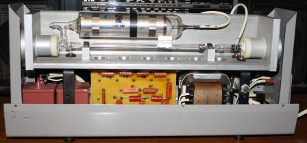 Есть газовый лазер АТМ-01. Внешний вид прилагается. Рабочий разряд в тонкой трубке, что ниже.