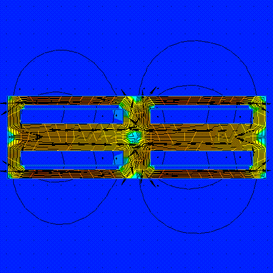 На днях поигрался с программой "Elcut" на предмет поглядеть как же будут распределяться поля от встречно расположенных магнитов с обмоткой вокруг них...