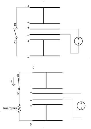 Рис.1 Заряжаем конденсаторы, одна из обкладок которых внешняя(наружная).
