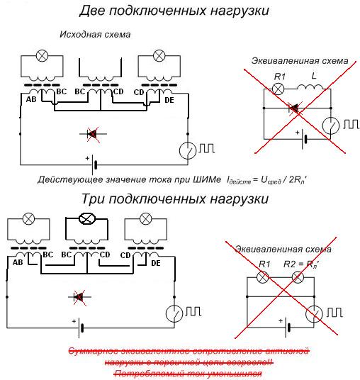 "Во первых стали ярче гореть лампы подключенные к правым вторичкам.