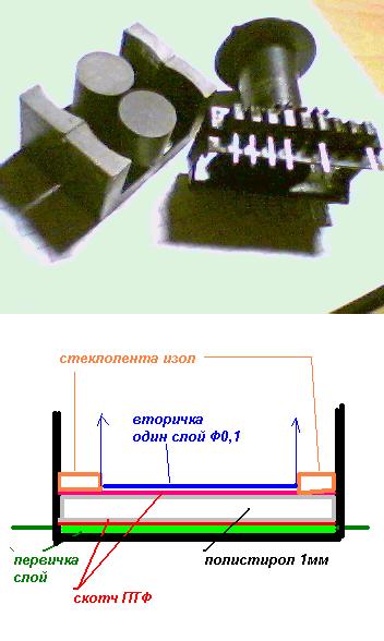 Ну да мне много не надо, подскажите как выглядят(что представляют собой первичная и вторичная обмотки) применительно к магнитопроводу и каркасу с этой картинки.