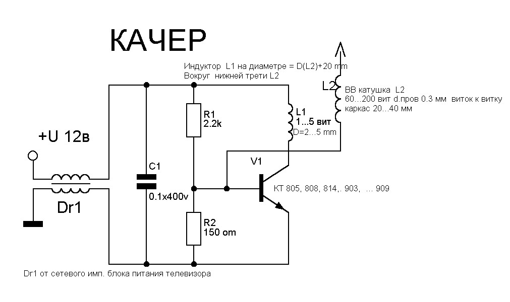 Придётся развёрнуто... За всё это время я так и не понял что такое качер. Схем тьма. Были от блокингов с трансформатором тока (почти как у Витали) до ключей со стабилизацией по току, и что? Что такое качер? В своё время высоковольтку и без таких ухищрений на КТ805 делал, так мне 15 лет было, плазму добывал.... Сейчас мне совсем не смешно.
