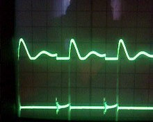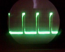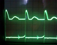 -1) "ослик" на входе "наноискровика". 2 В/деление; 10 мкс/деление.