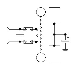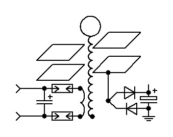 Если потенциал на концах ВВ катушки в противофазе (а скорее всего так и будет), то такая схема нерациональна - пластины надо разомкнуть и каждую на свою емкость, получится двуполярный источник
