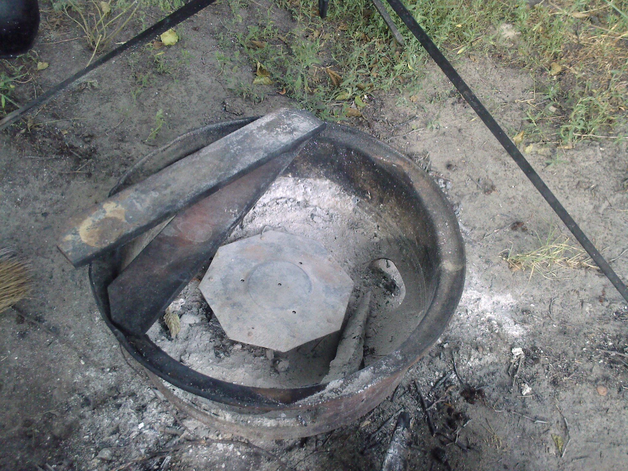 За лето я всесторонне проверил свою миску-испаритель и признал, что несмотря на кажущуюся простоту, сей девайс-вполне достойная штука. За период с 15 мая и по 15 сентября, когда я живу в передвижном вагончике на речке я сжег около 4 складометров обрезков осины и тополя.Это где-то пол машины ГАЗ. За три месяца прошлого года я сжег почти две машины, тех же дров. Хотя экономия получилась и за счет рационализации очага, вместо кирпичей использовался диск ГАЗ-51.