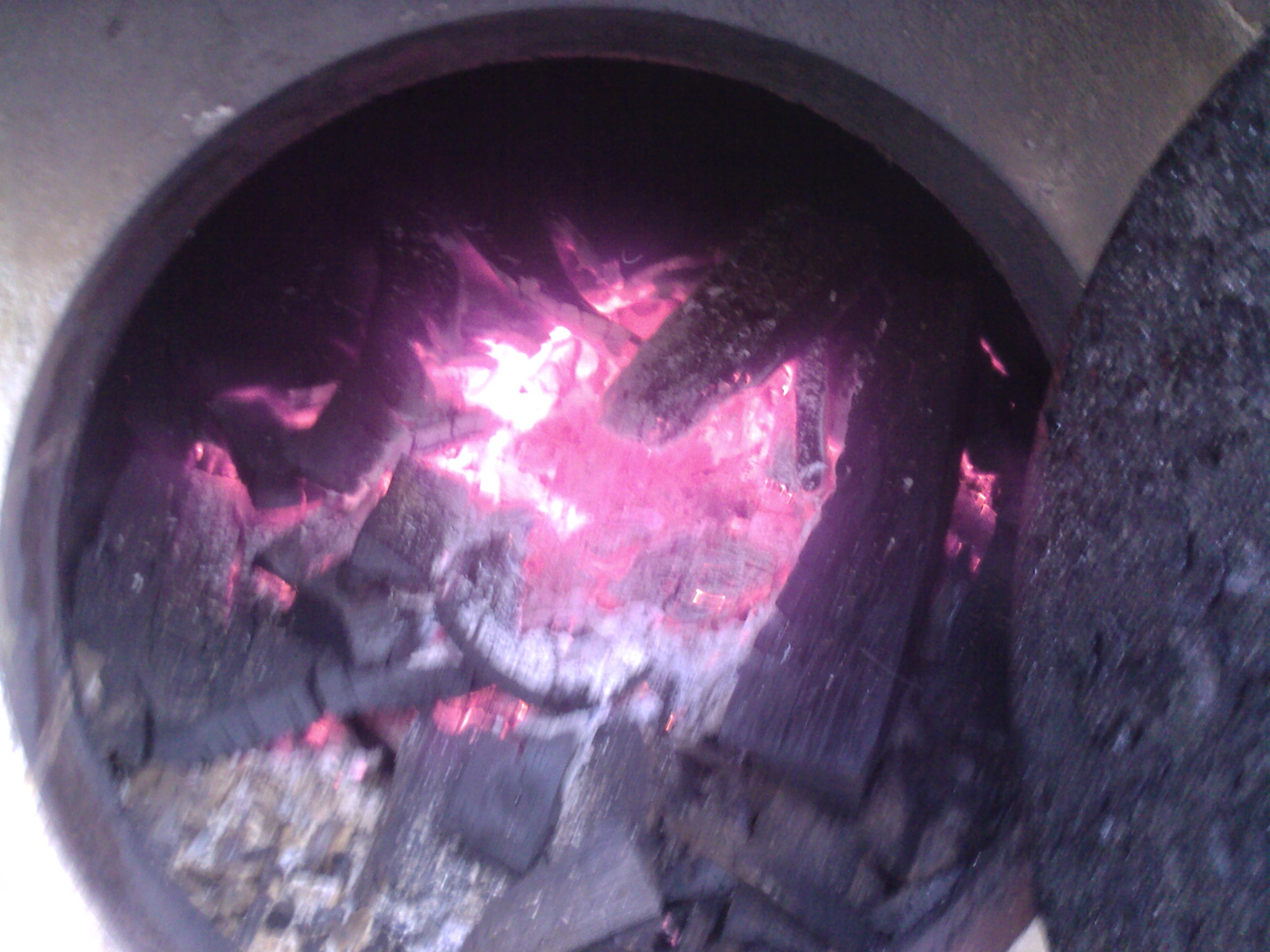 Все правильно у тебя. Уголь должен гаснуть от чистого пара.