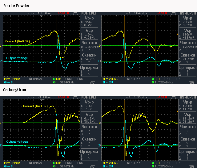 Остается покрытым тайной вопрос, как там с коэффициентами пересчета на щупах и учитывает ли автоматом это осцилл, некоторые тектрониксы -да, некоторые -нет. Потом, насколько правильно профессор подкллючил щупы. На видео у него два канала подключены следующим образом: первый канал измеряет ток потребления на первом шунте, а второй ток в нагрузке на втором шунте. Напряжения у него на видео осциллографом не измеряются.