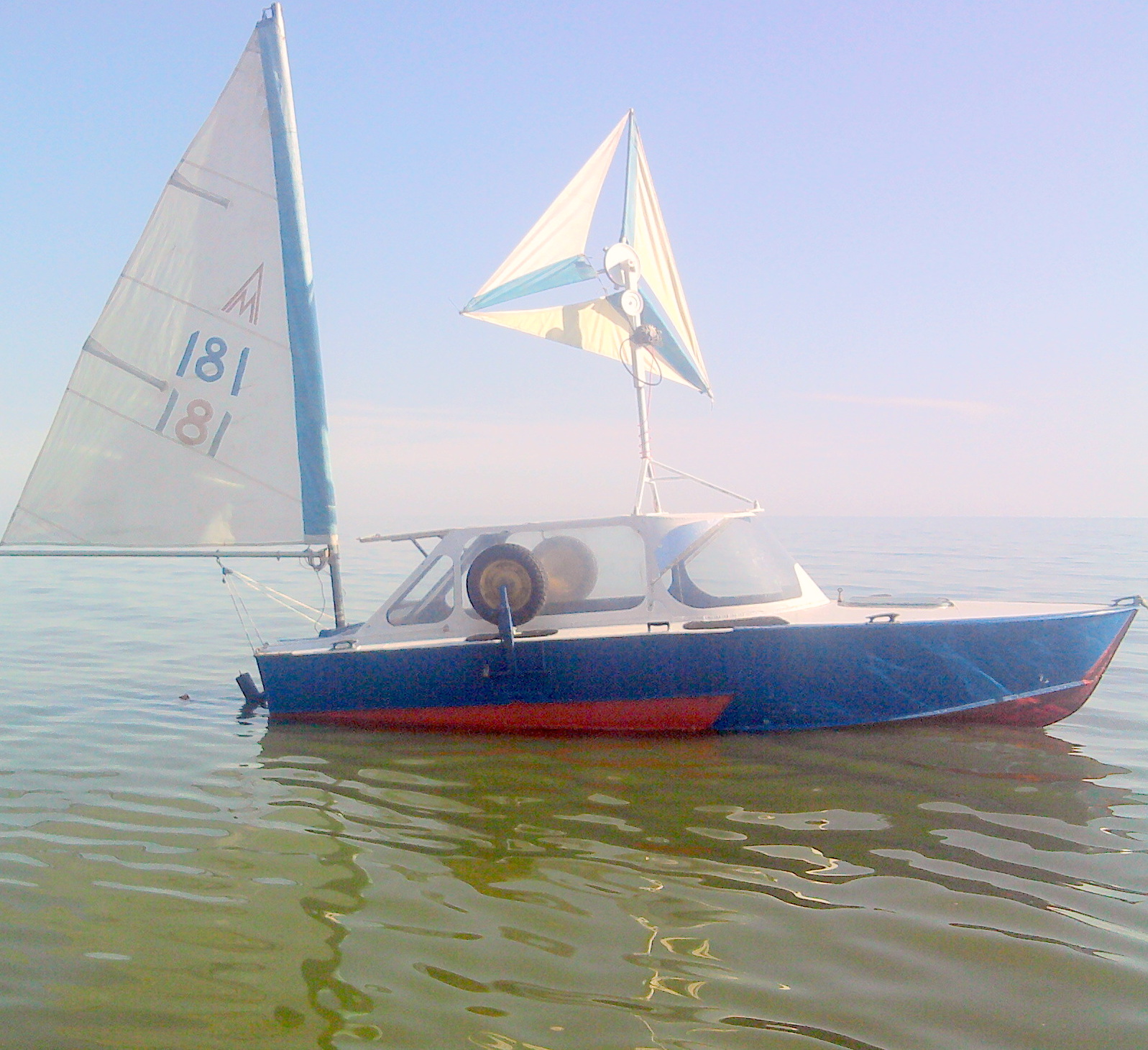 Так тут и нет ничего, как и должно быть. Всё стоит на месте, и лодочка, и трусо-колесо. Подвода энергии нет - ничего нет.