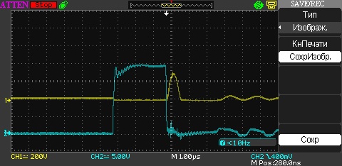 Делаю длинный вариант. Фронт похож на букву М, т.е. два "горба" как на картинке. У меня при таком режиме работы происходит самый быстрый разряд. Все укладывается в 400- 500 нс и тишина. Красиво получается, а если по другому, то горит не меньше 1,5-2 мкс. Что- то в этом есть, посмотрим теперь на машине.