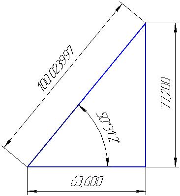Из центра круга по горизонтали проводим отрезок (катет), равный 63,6 см. Вверх перпендикуляр (второй катет), равный 77,2 см. Соединяем центр круга и конец второго катета. Получилась гипотенуза, она же радиус, равный 100 см. Из конца данного радиуса-гипотенузы чертим дугу, равную второму катету, т.е. 77,2 см, так, чтобы она (дуга) пресеклась с продолжением гипотенузы-радиуса. Полученный отрезок, равный сумме радиуса и второго катета(100+77,2=177,2) и есть сторона равновеликого с кругом квадрата.