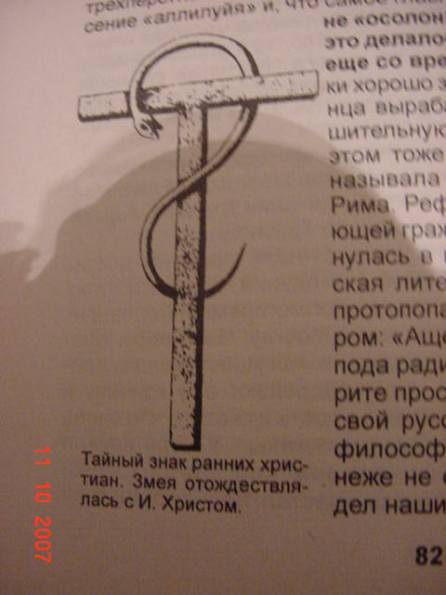 "Тайный знак ранних христиан. Змея отождествлялась с И. Христом."