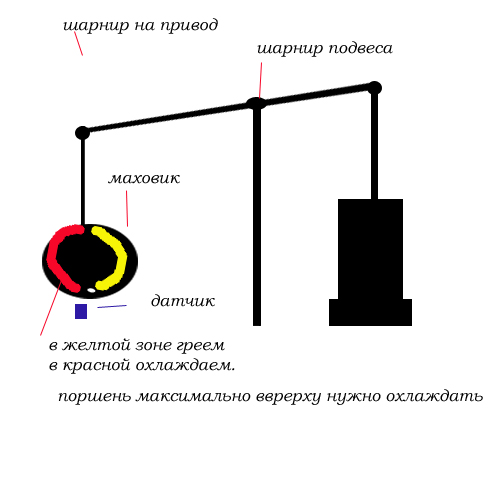 я собственно о конвертации перемещения поршня в что то полезное. у меня на схеме рычаг именно для этих целей даже если просрать половину мощности на рычаге останется масса вкусного и полезного вращения.