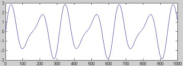 Ну вот как может мембрана динамика колебаться и 1000 и 1500 раз в секунду одновременно? Собственно форма ее колебаний показана на рисунке ниже - это сумма 2-х синусоид с частотами, отличающимися примерно в 1.5 раза.