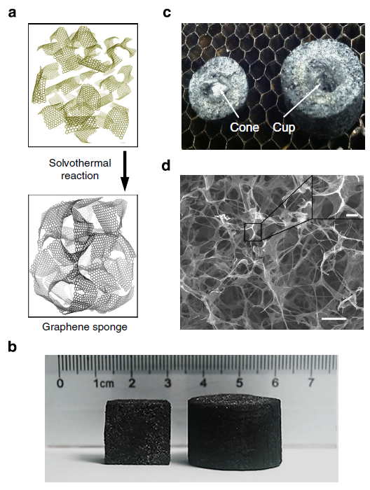 Графеновую губку учёные получили из смятых листов оксида графена. Они пытались резать этот материал лазерным резаком, и внезапно обнаружили, что под воздействием лазерного луча материал начинает двигаться. Будучи помещёнными в вакуумную камеру, небольшие кусочки графеновой губки получилось подбросить лазером вверх на высоту до 40 см. Их заставляли двигаться даже солнечные лучи, сфокусированные при помощи обычной линзы.
