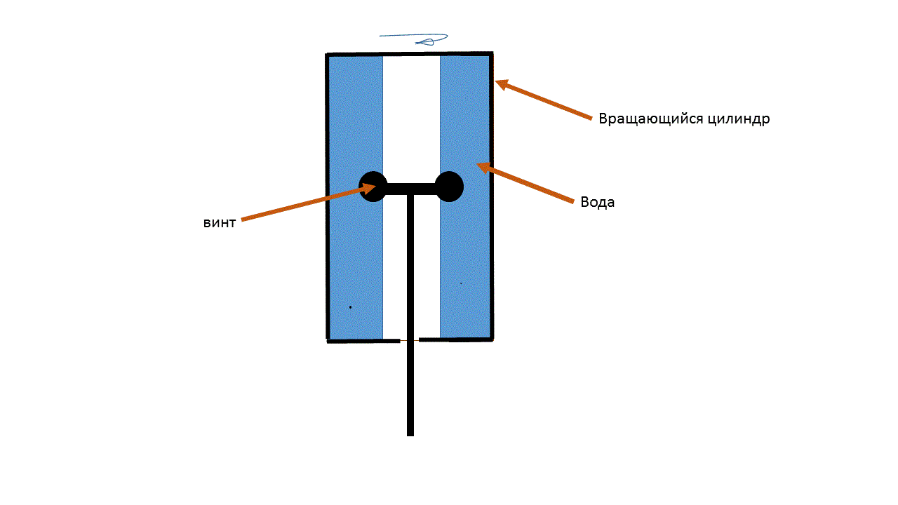 Вот идея, а если взять заполненный на половину водой цилиндр и раскрутить его, а внутри поместить не подвижный винт, погруженный частично лопастями в воду. То центробежные силы постоянно будут ровнять уровень воды внутри цилиндра.