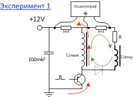 Кстати, этот эксперимент говорит о том, что обратный ход - это не результат схлопывания магнитного поля, не результат размагничивания сердечника - это всего лишь инерционное движение электронов в катушке.