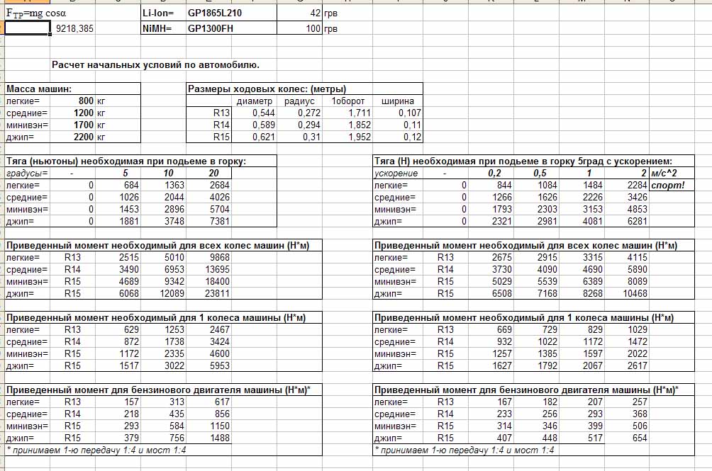 Спецом чтобы не обманывать никого я посчитал приведенные моменты и силы тяги для разных машин при разных колесах - публикую ее опять.