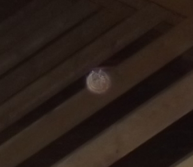 Особо офигительно выглядит объект на чердаке! Тот чердак был полностью выложен стекловатой. Бомбар при обсуждении этого фото выдвинул версию, что это пыль от стекловаты, попавшая в растр объектива при фотовспышке.
