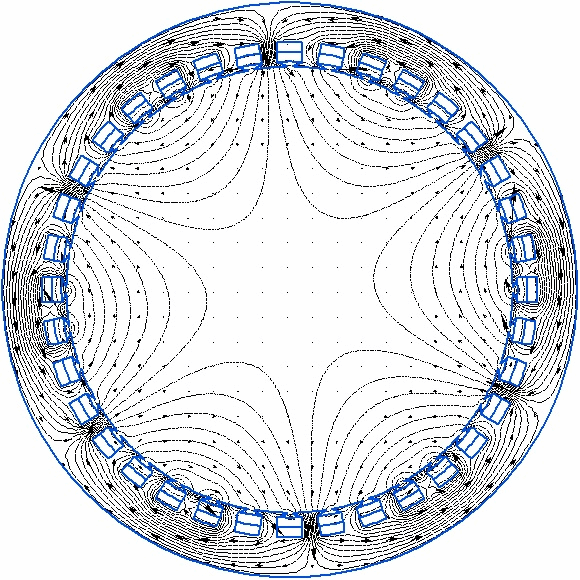 Т.е. образуется так называемая магнитная яма и она будет формироватьса всегда когда ток проводника идёт "от нас" или "на нас" . Т.о. образуется вектор движения(выталкивания) в одну сторону т.е. вращение ротора.