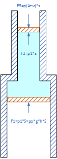 Так площадь дна поршня остается всё той же, и давление воздушной подушки всё также определяется высотой столба воды в бассейне.