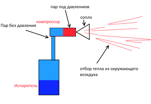 А я так представлял: Так как при пониженном давлений на испарение воды энергий расходуется меньше то делаем пар.Затем этот пар выдавливаем в нормальную атмосферу и там конденсируем забирая тепло. Так как при обычном давлений на испарение того же количества воды требовалось бы побольше энергий то и при конденсаций при обычном давлений того же количества воды выделится больше энергий. Отсюда и прирост. А у вас,как вижу,другая каша в голове... На рисунке не совсем ясно где правильнее СЕ отбирать...