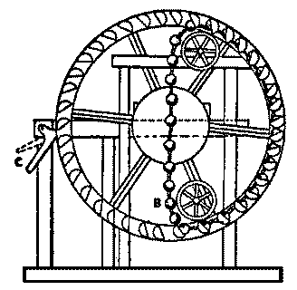 Это запатентованное устройство говорит само за себя. Цепь тяжелых шаров явно перебалансирована, с не только большим весом, но и большим крутящим моментом на правой стороне. британский патент № 1870. Dircks (1861), с. 482.>
