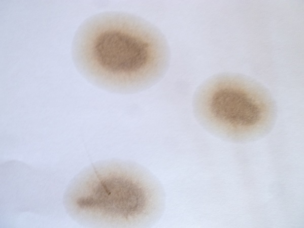 Повторил фото токо уменьшил до 600 пикселей не меняя яркость и контрастность. Также приложил и не уменьшенные фотки. На втором пятне была черная кракозябра, я её пальцем удалил остался черный след.