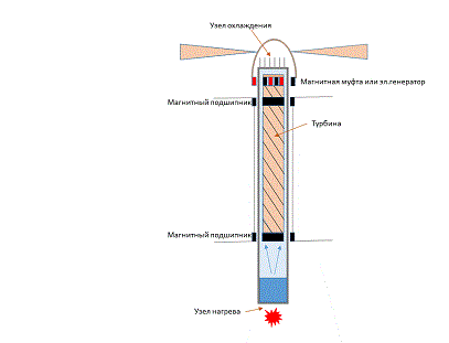 Это у мудреца работать не будет, ведь он мудрит 😊 Рабочее тело парожидкостная смесь в закрытом разряженном объеме тепловой трубки. Я уверен в том что турбина лишнее в этой конструкции т.к. механизм требует исполнения с молекулярной точностью. Турбину думаю можно заменить не подвижным спиральной формы элементом в конструкции тепловой трубки и тогда т.т. будет вращаться.