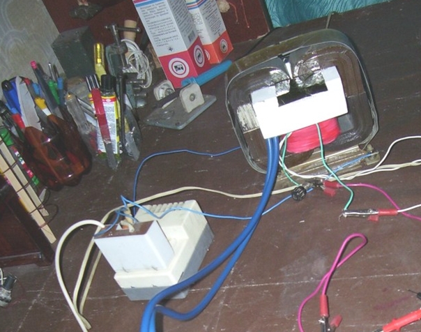 Огромное спасибо.А я уже было надумал 50Гц статикой бомбить-стрёмно это.А то одна экспериментаторша просто подала искру с ТВСа к вторичке транса на 12В и провод её диам 1,5мм после взрыва погорел ровными кусочками по 6см с оплавленными шариками по краям.Обмотка была отдельно от первички и была залита эпоксидкой,чтобы можно на неё было потенциал грузить.То,что у тебя электронный пронижающий БП в доске?