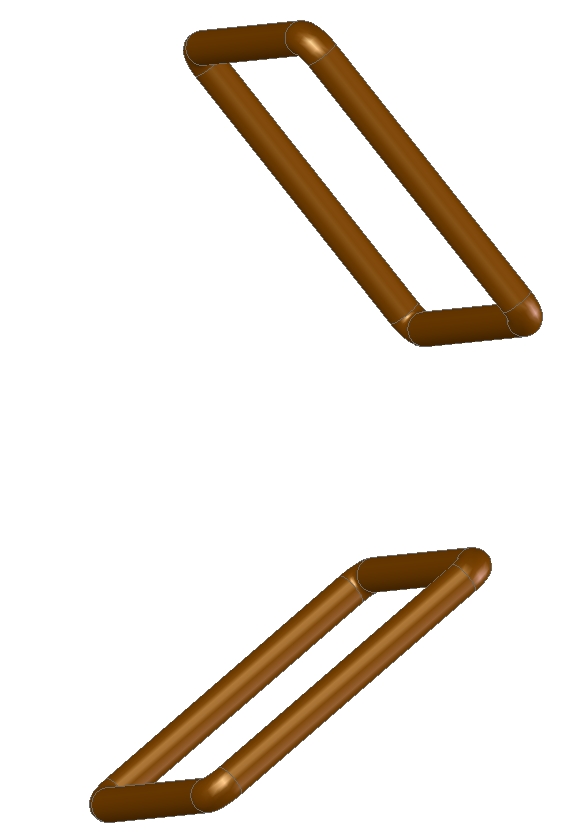 Теперь продеваем через них замкнутый магнитопровод, контуры остаются не подвижны. Положение "токов" Ампера не изменилось, но теперь взаимодействие близко к 100%.