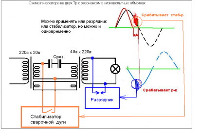 Если упростить максимально , просто Тр и на вторичке лампочка и паралельно лампочке разрядник. Настроен Тр так что только срабатывает разрядник, параметры Тр меняются ( сдвигается синус в сторону ноля )и разрядник гаснет.Скорость разрядов очень короткая, контакты разрядника не успевают нагреться.