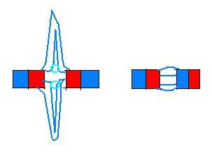 Я тута быстренъко нарисовал взаимодействие полей. Чтобы проверитъ в натуре нужно между полюсами встрямитъ кусок магнитного материала т.к замыкание однополярных полюсов убивает магниты и смотреть образование в "стенке Блоха " либо нуля либо взаимоотторжения .