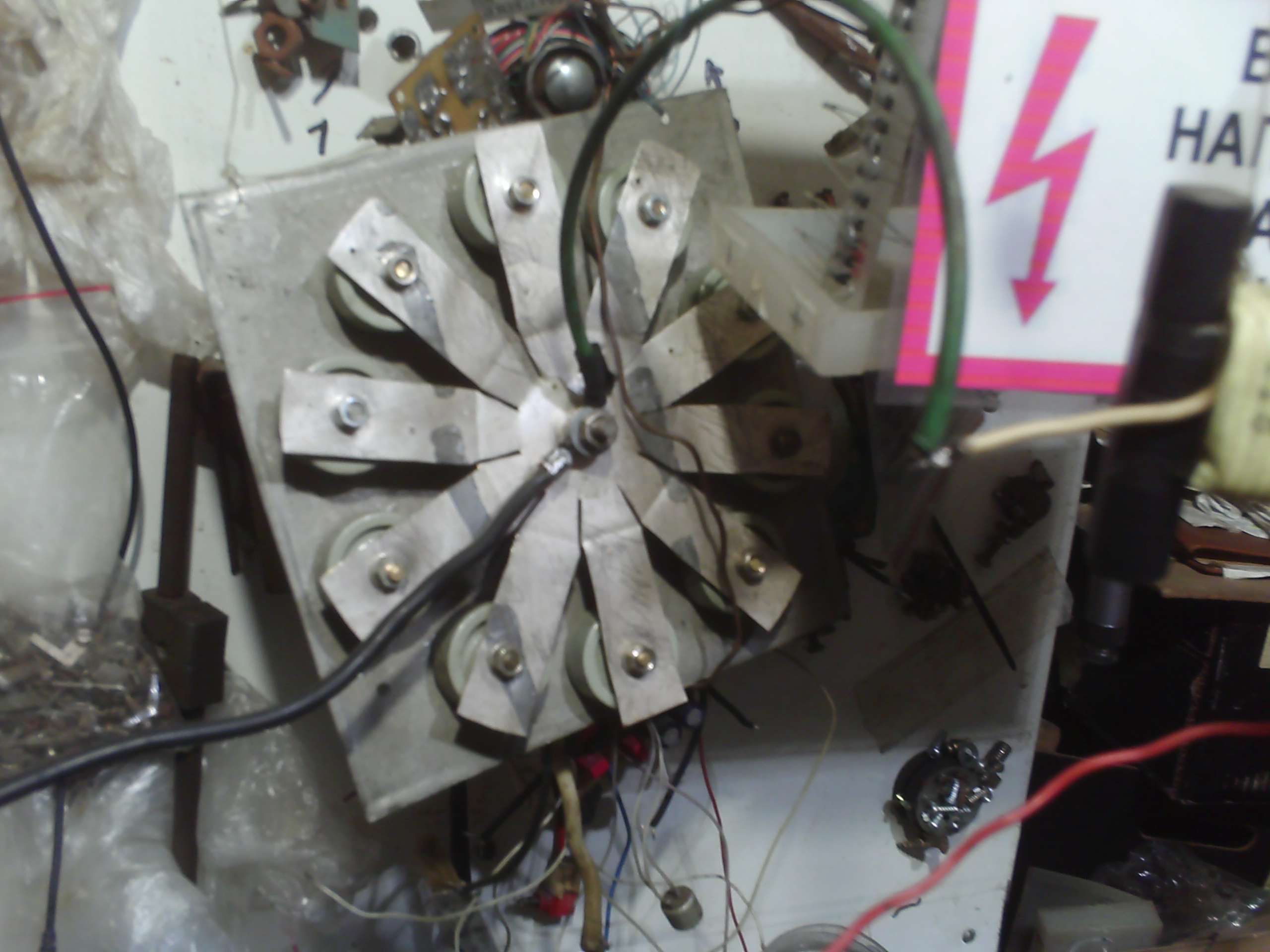 В больших.Например между двумя полосками алюминия-заглушками дсп из которого сделан стол с зазором по 7мм с обоих сторон горит дуга с обоих сторон при включении установки.Также на проводах электросети,на включенном в неё защитном разряднике с зазором 1мм.При этом два вида электричества не смешиваютя и горячая дуга 50Гц не загорается,пробки не выбивает.Конечно установка мало похожа на генератор грузина,но процесс тот же.Вот конденсатор,который у грузина-эелёненький-а у меня такой конструктив. Это переменный ВВ конденсатор для импульсных токов.