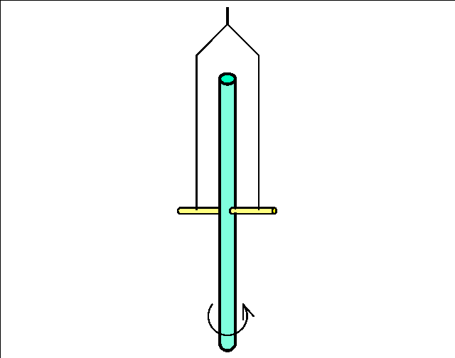 ...Начало эксперимента : слегка асимметрично подвешенный стержень в горизонтальной ориентации в состоянии покоя.